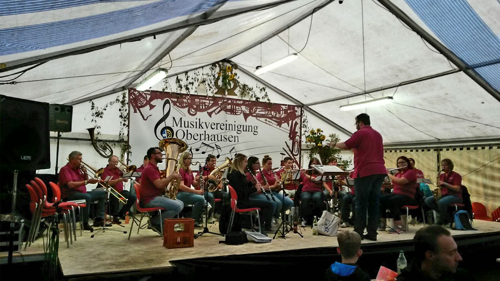 Musikfest Oberhausen Da unsere Musikfreunde aus Oberhausen ebenfalls an diesem Wochenende ihr Kerwe-Musikfest feiern, fahren wir nach dem Pfarrfest gleich zum Festzelt bei der Radrennbahn. Dirigentin Sabine Knebel hat nochmals ein schönes Programm aus dem Sommer-Repertoire zusammengestellt, obwohl wir schon seit zwei Wochen für unser Jubiläumskonzert proben. Unser Auftritt in Oberhausen beginnt um 13:15 Uhr. Über mitreisende Fans würden wir uns sehr freuen.