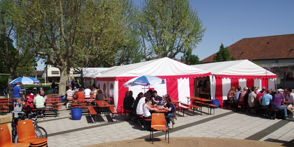 Maifest gut besucht Ein großer Erfolg war das diesjährige Maifest des Musikvereins Harmonie im heimischen Stadtpark. Bei bestem Wetter wurde der Maibaum durch den Handwerker- und Gewerbeverein aufgestellt. Die Zimmererzunft stellte den Maibaum, der durch den Verein historische Baumaschinen in Begleitung des Bruhrain Fanfarenzugs gebracht wurde. Bürgermeister MdL Heiler hielt die Eröffnungsrede und zelebrierte den Fassanstich. Durch die befreundeten Musikvereine aus Oberhausen und Kirrlach wurden die zahlreichen Besucher bestens unterhalten. Die Töne Bruhrains setzten dem Unterhaltungsprogramm das Sahnehäubchen auf. Am 1. Mai herrschte ein großer Gästezuspruch, der die Helferteams hinter den Theken ganz schön ins Schwitzen brachte. Der Musikverein bedankt sich bei allen Festbesuchern und vor allem bei den fleißigen Helfern, sei es bei der Planung, dem Auf- und Abbau, an den Getränke- und Essensständen, sowie bei allen Kuchenspendern.