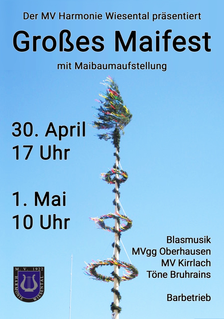 Kerwefest des MGV Wiesental Am Kerwe-Sonntag, 7.Oktober feiert der MGV Wiesental sein Kerwefest im Pfarrsaal Wiesental. Hier spielt das große Blasorchester ab 17 Uhr.