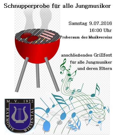 Nach einer tollen Saison im ersten Halbjahr 2014 wollen wir uns mit einem Grillfest für alle Jungmusiker und ihren Familien in die Sommerpause verabschieden.